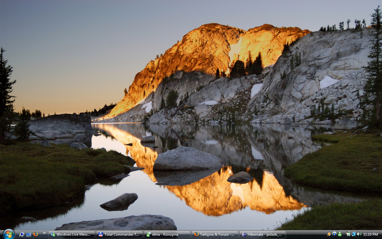 "Show desktop icons/Masa üstü öğelerini göster" kapalıdır hep, o yüzden böyle temiz. Bir de "total commander" hep açıktır, oradan ulaşıyorum masaüstüne bile...